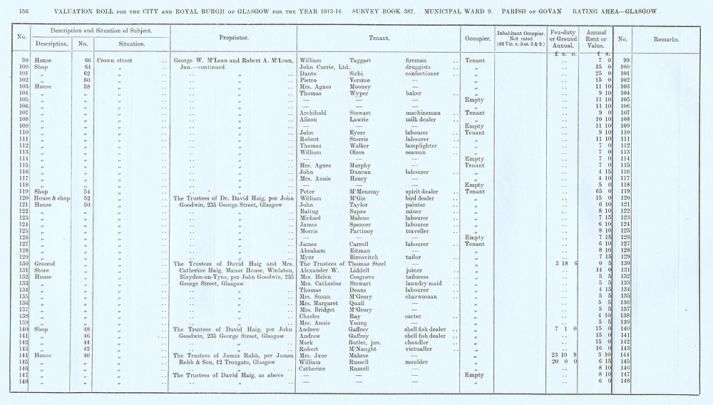 Glasgow Valuation Roll VR 1913-14, Ward 09, p156