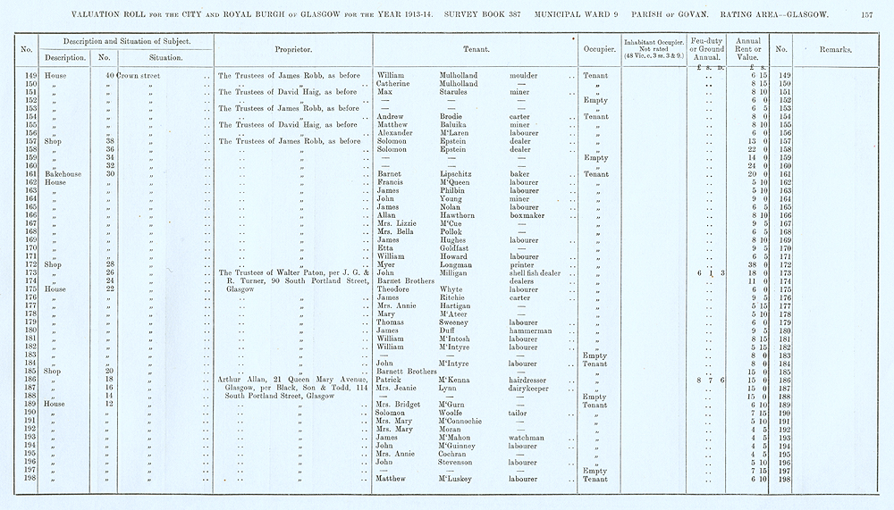 Glasgow Valuation Roll VR 1913-14, Ward 09, p157