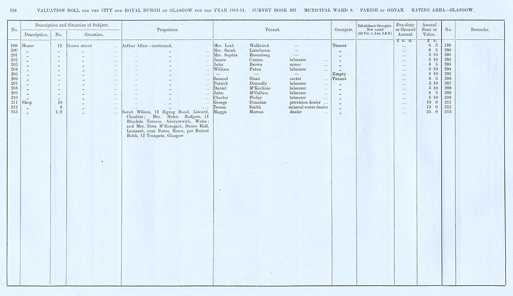 Glasgow Valuation Roll VR 1913-14, Ward 09, p158