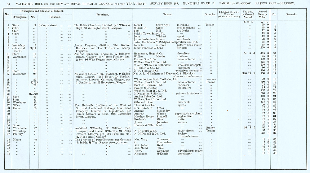 Glasgow Valuation Roll VR 1913-14, Ward 12, p094
