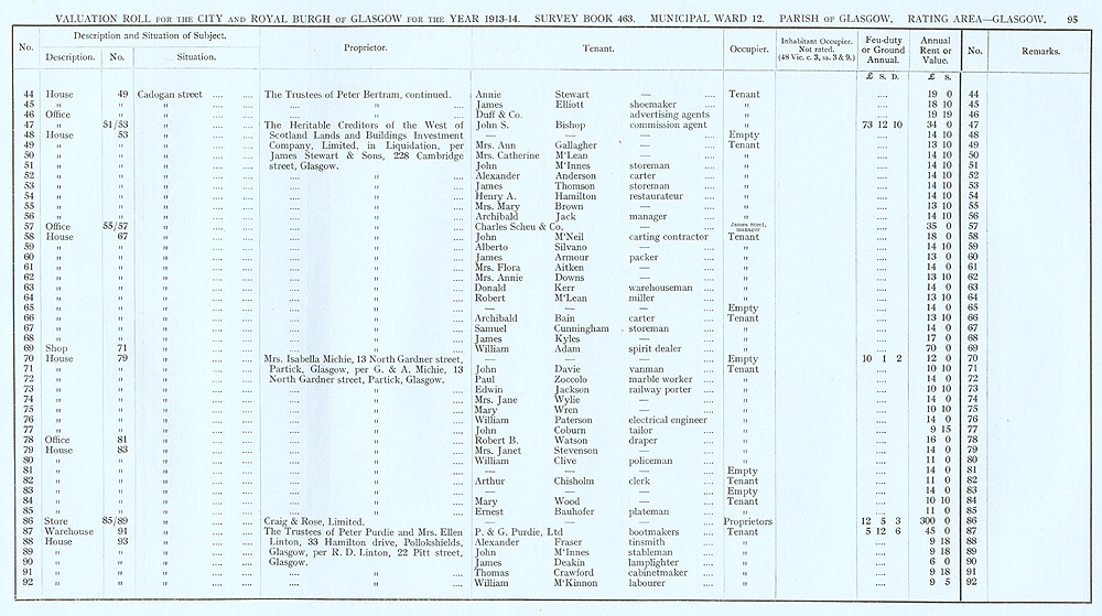 Glasgow Valuation Roll VR 1913-14, Ward 12, p095