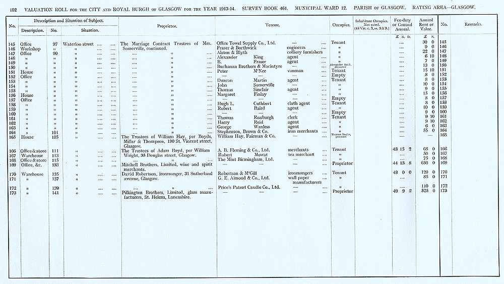 Glasgow Valuation Roll VR 1913-14, Ward 12, p102