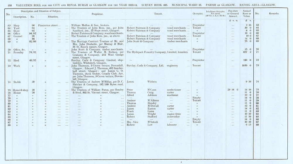 Glasgow Valuation Roll VR 1913-14, Ward 13, p108