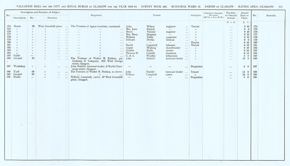 Glasgow Valuation Roll VR 1913-14, Ward 13, p111