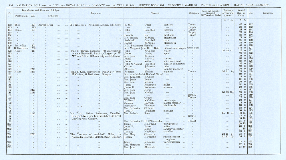 Glasgow Valuation Roll VR 1913-14, Ward 13, p116