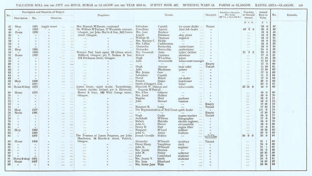 Glasgow Valuation Roll VR 1913-14, Ward 13, p119