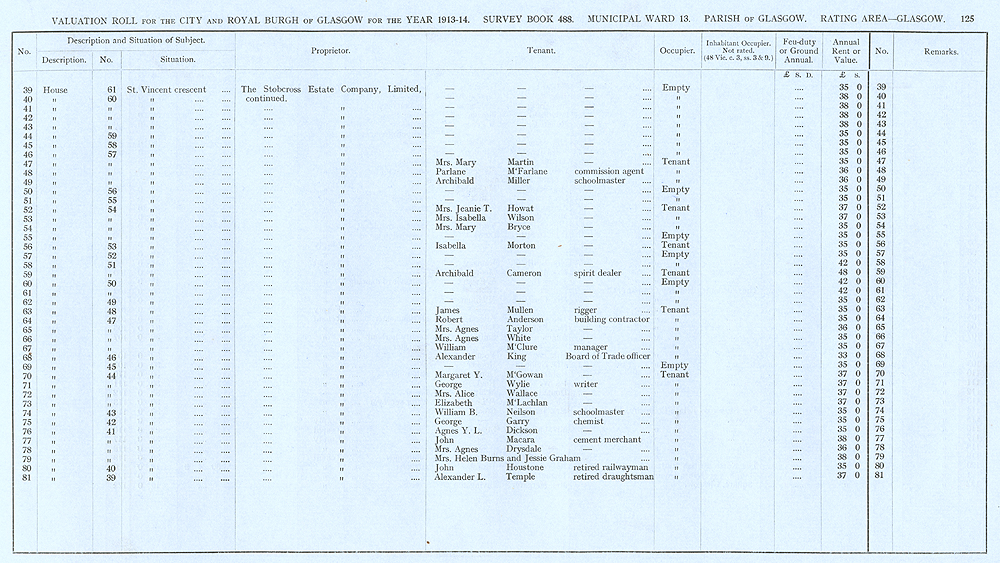 Glasgow Valuation Roll VR 1913-14, Ward 13, p125