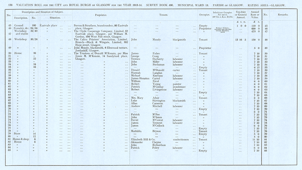 Glasgow Valuation Roll VR 1913-14, Ward 13, p136