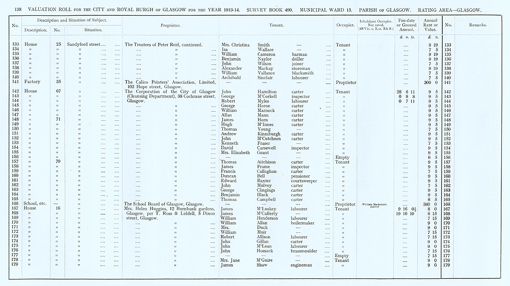 Glasgow Valuation Roll VR 1913-14, Ward 13, p138