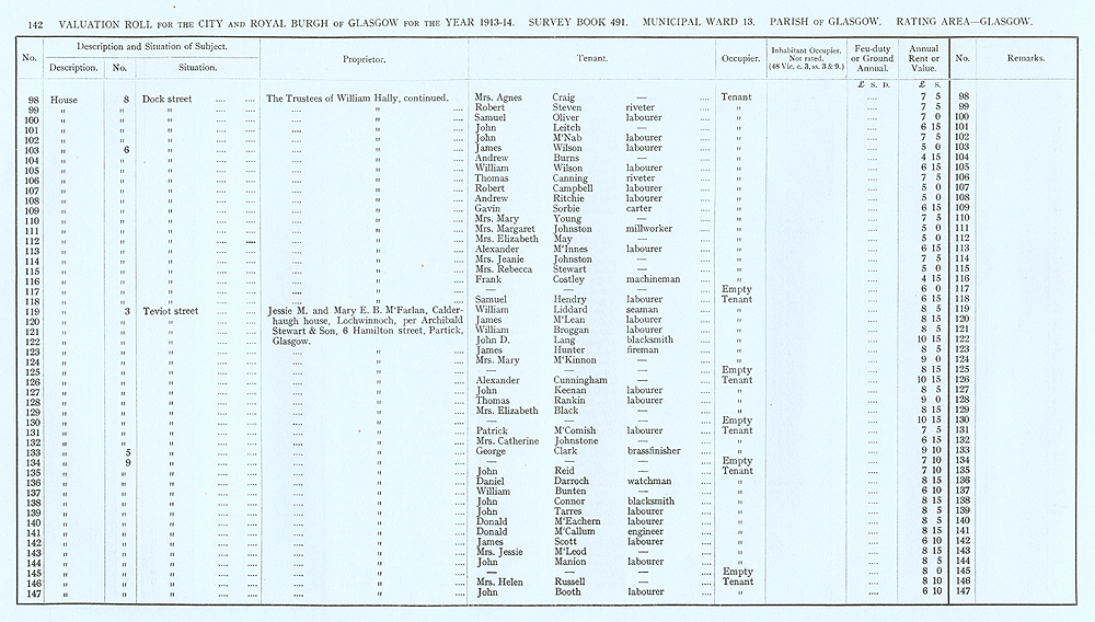 Glasgow Valuation Roll VR 1913-14, Ward 13, p142
