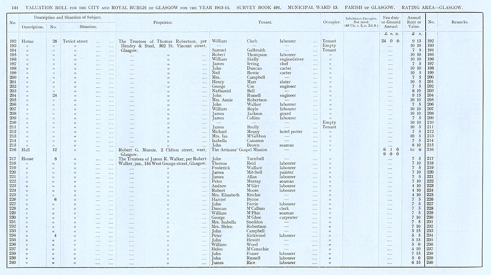 Glasgow Valuation Roll VR 1913-14, Ward 13, p144