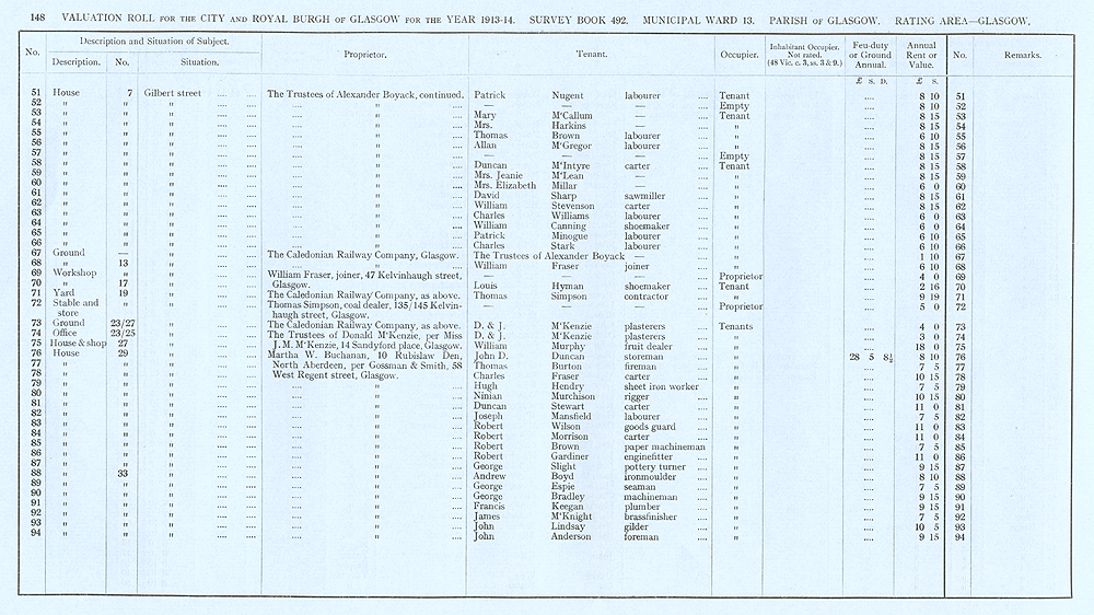 Glasgow Valuation Roll VR 1913-14, Ward 13, p148