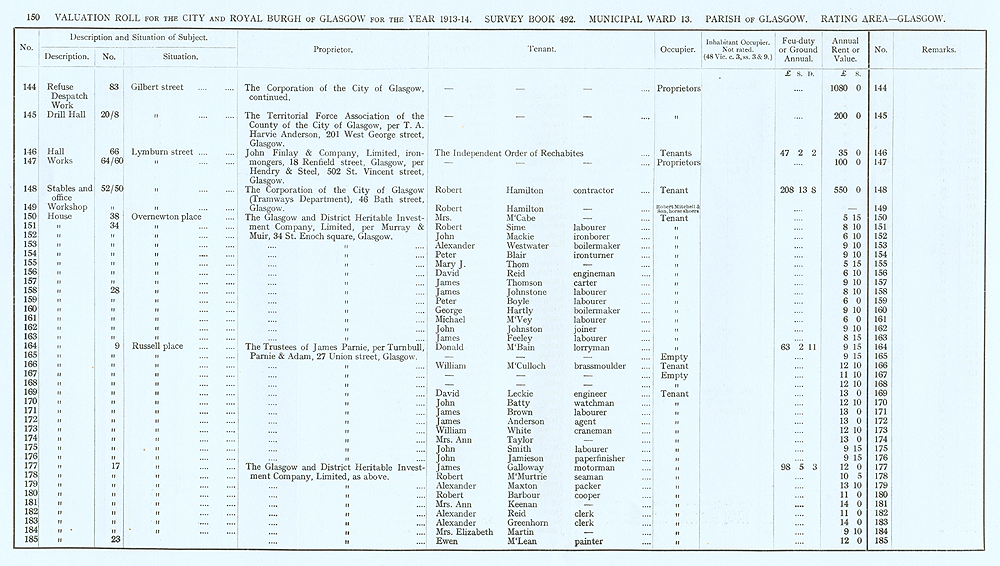 Glasgow Valuation Roll VR 1913-14, Ward 13, p150