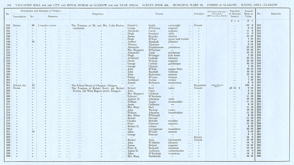 Glasgow Valuation Roll VR 1913-14, Ward 13, p164