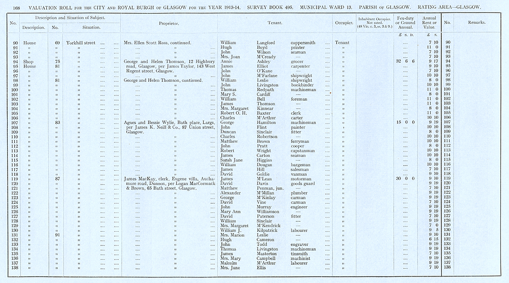 Glasgow Valuation Roll VR 1913-14, Ward 13, p168
