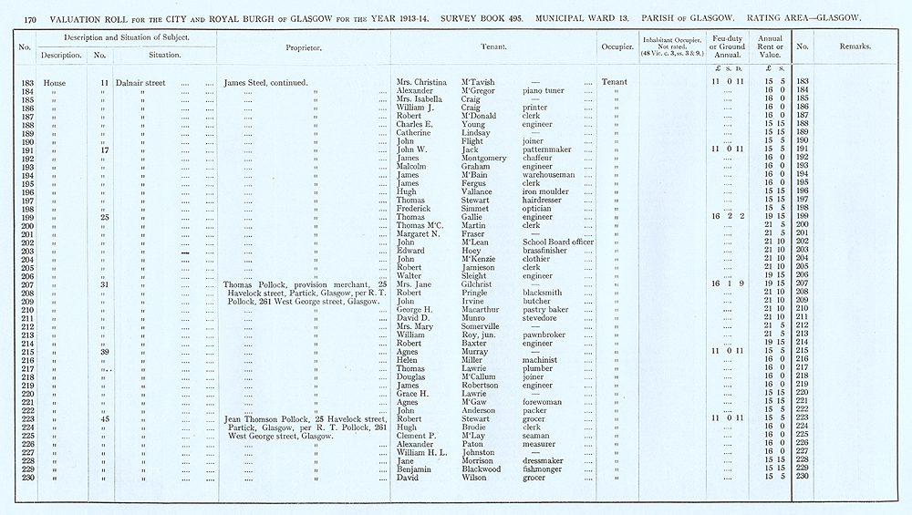 Glasgow Valuation Roll VR 1913-14, Ward 13, p170