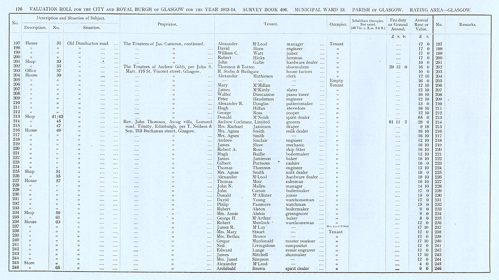 Glasgow Valuation Roll VR 1913-14, Ward 13, p176