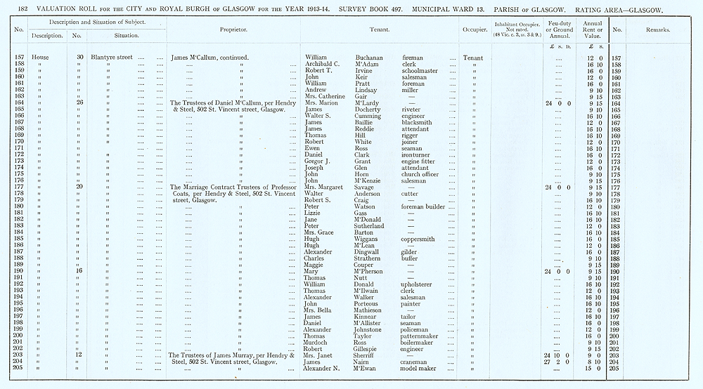 Glasgow Valuation Roll VR 1913-14, Ward 13, p182