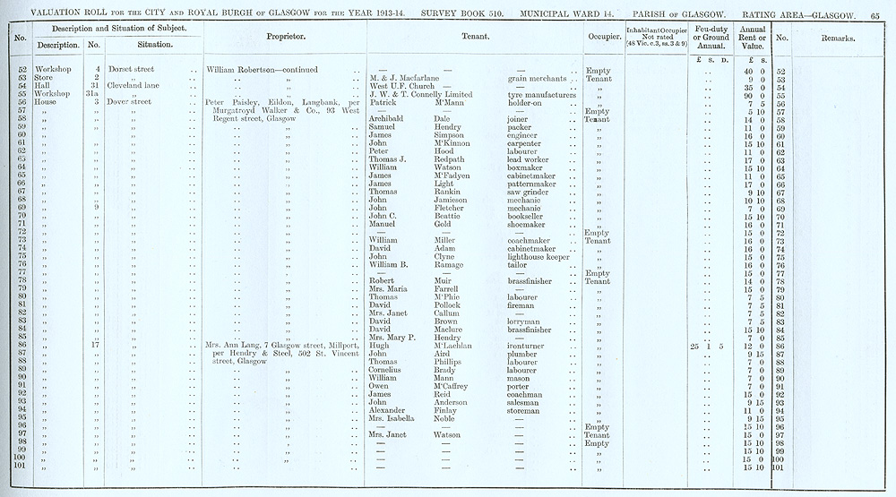 Glasgow Valuation Roll VR 1913-14, Ward 14, p065