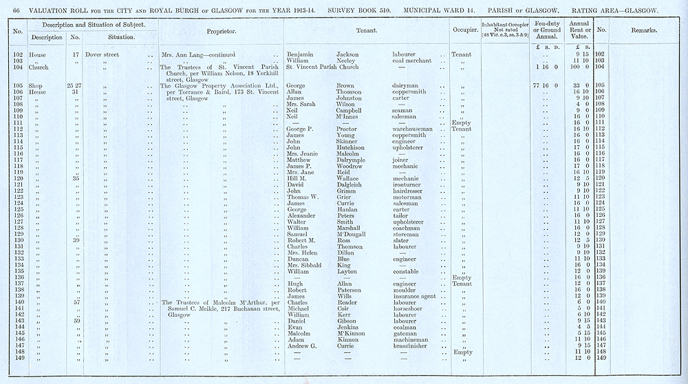 Glasgow Valuation Roll VR 1913-14, Ward 14, p066