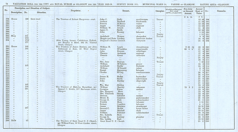 Glasgow Valuation Roll VR 1913-14, Ward 14, p074