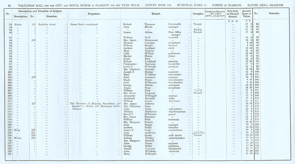 Glasgow Valuation Roll VR 1913-14, Ward 14, p082
