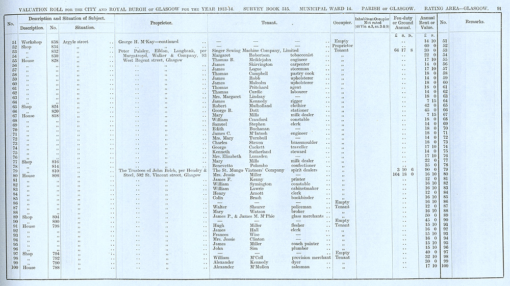 Glasgow Valuation Roll VR 1913-14, Ward 14, p091