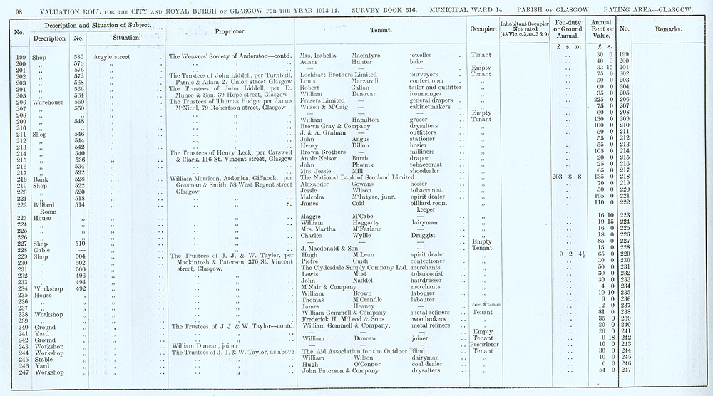 Glasgow Valuation Roll VR 1913-14, Ward 14, p098