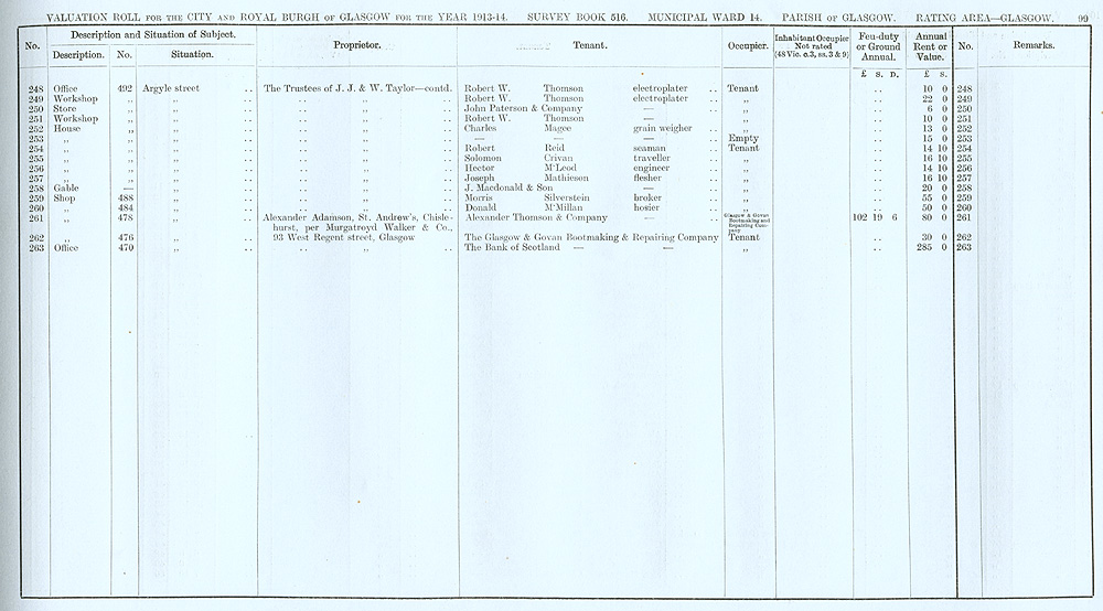 Glasgow Valuation Roll VR 1913-14, Ward 14, p099