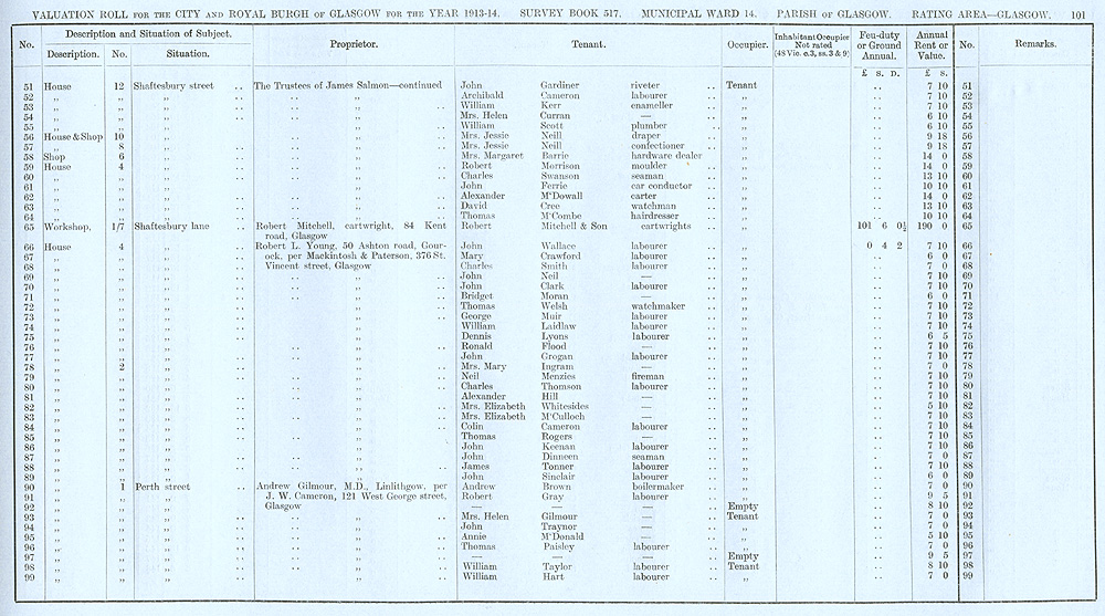 Glasgow Valuation Roll VR 1913-14, Ward 14, p101