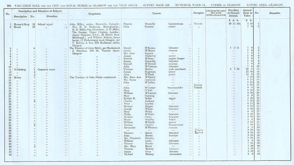 Glasgow Valuation Roll VR 1913-14, Ward 14, p104