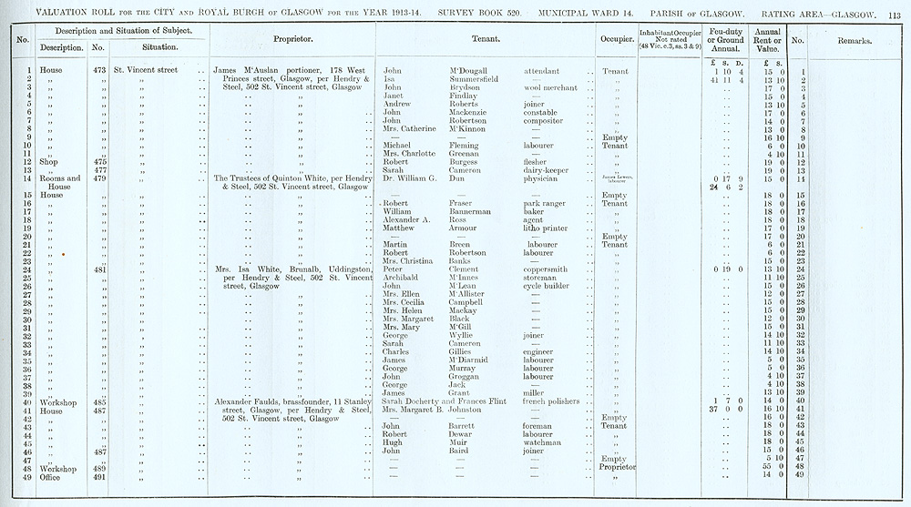 Glasgow Valuation Roll VR 1913-14, Ward 14, p113