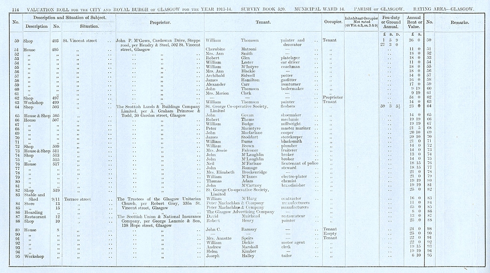 Glasgow Valuation Roll VR 1913-14, Ward 14, p114