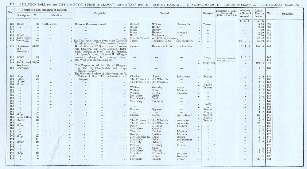 Glasgow Valuation Roll VR 1913-14, Ward 14, p122