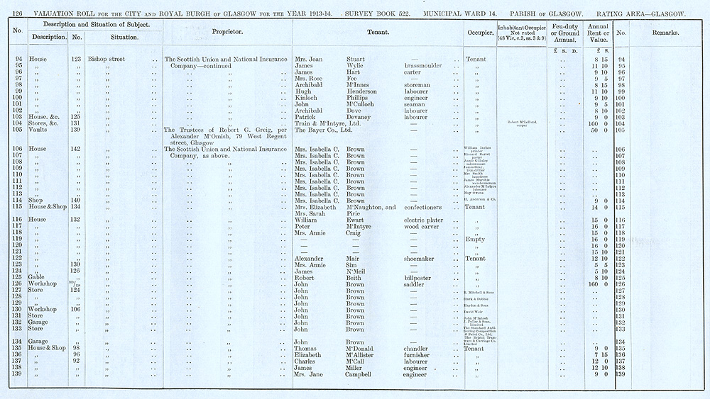 Glasgow Valuation Roll VR 1913-14, Ward 14, p126