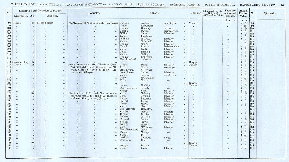 Glasgow Valuation Roll VR 1913-14, Ward 14, p151