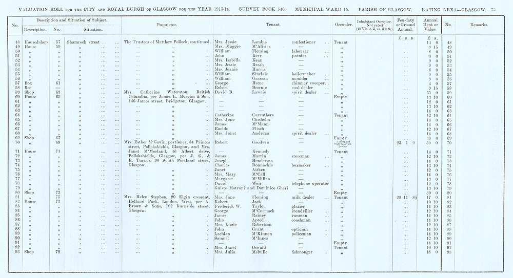 Glasgow Valuation Roll VR 1913-14, Ward 15, p073
