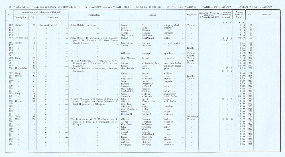 Glasgow Valuation Roll VR 1913-14, Ward 15, p076