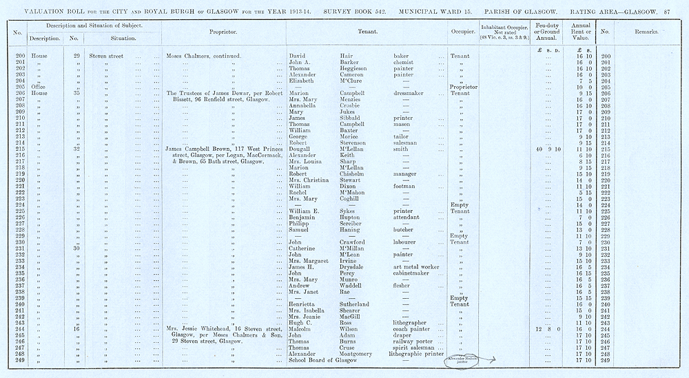 Glasgow Valuation Roll VR 1913-14, Ward 15, p087