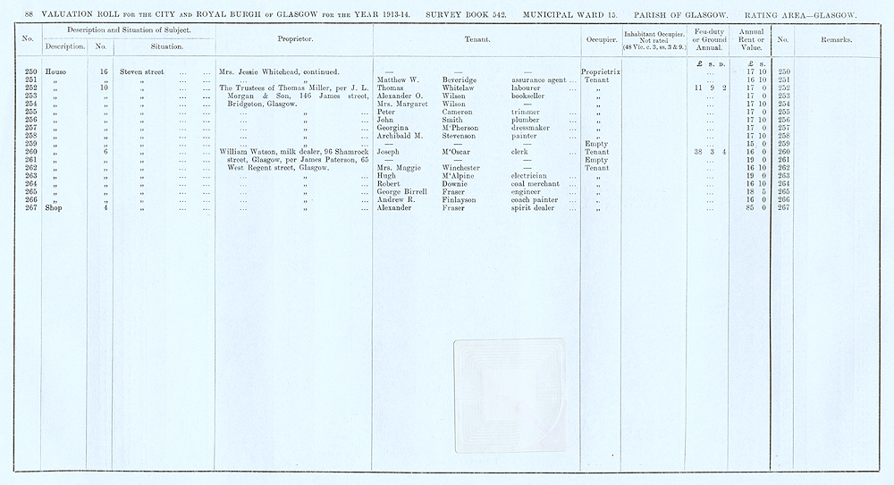 Glasgow Valuation Roll VR 1913-14, Ward 15, p088