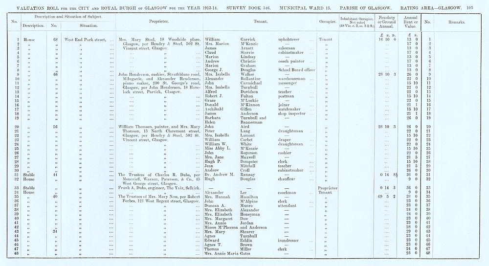 Glasgow Valuation Roll VR 1913-14, Ward 15, p105
