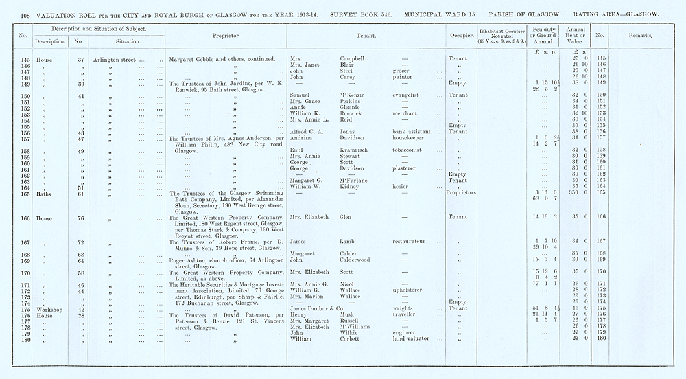Glasgow Valuation Roll VR 1913-14, Ward 15, p108