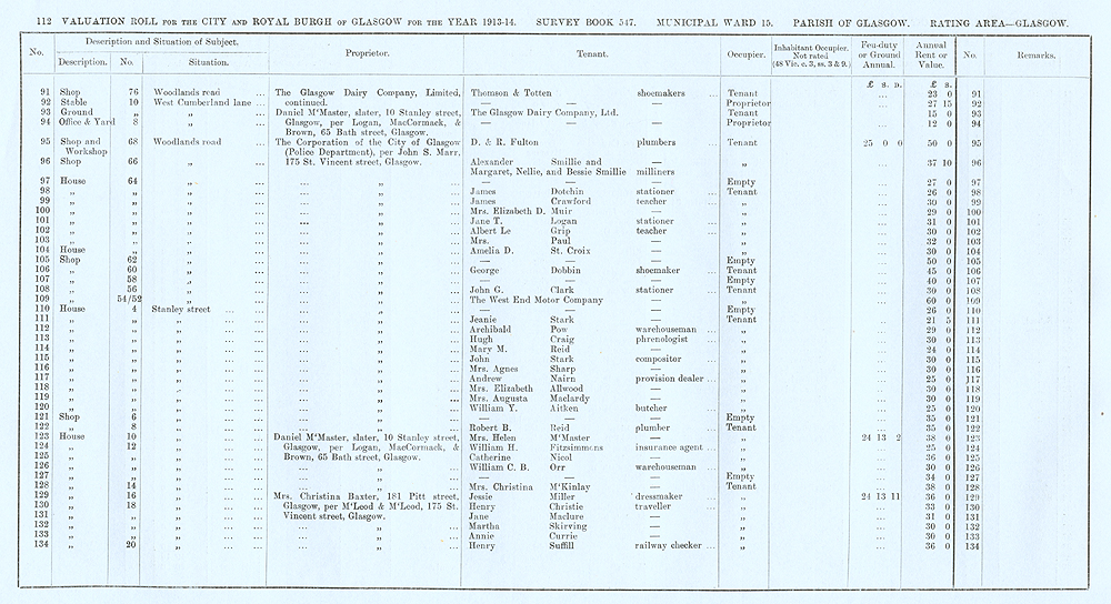 Glasgow Valuation Roll VR 1913-14, Ward 15, p112