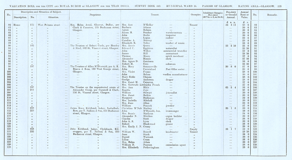 Glasgow Valuation Roll VR 1913-14, Ward 15, p123