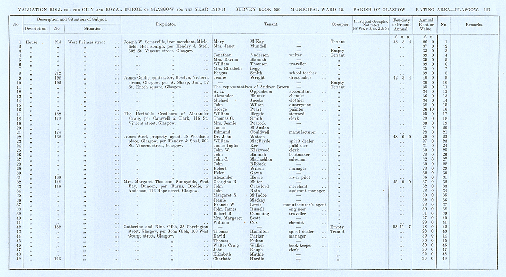 Glasgow Valuation Roll VR 1913-14, Ward 15, p127
