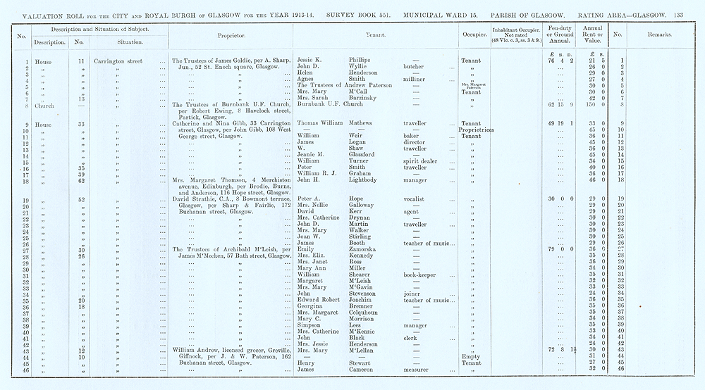 Glasgow Valuation Roll VR 1913-14, Ward 15, p133