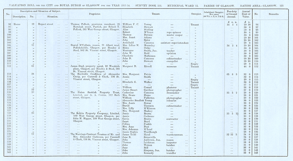 Glasgow Valuation Roll VR 1913-14, Ward 15, p135