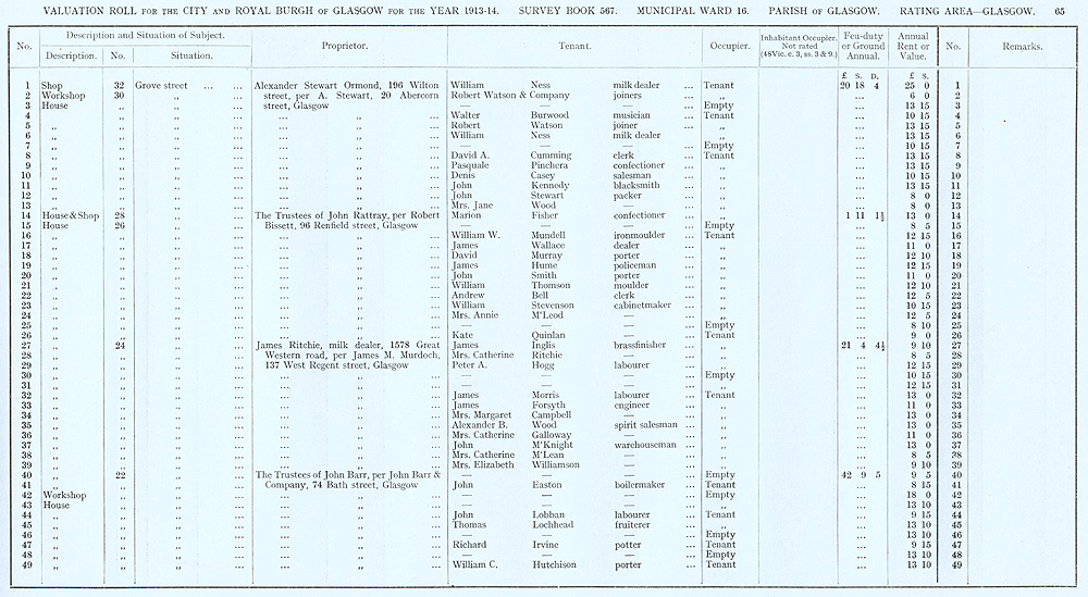 Glasgow Valuation Roll VR 1913-14, Ward 16, p065