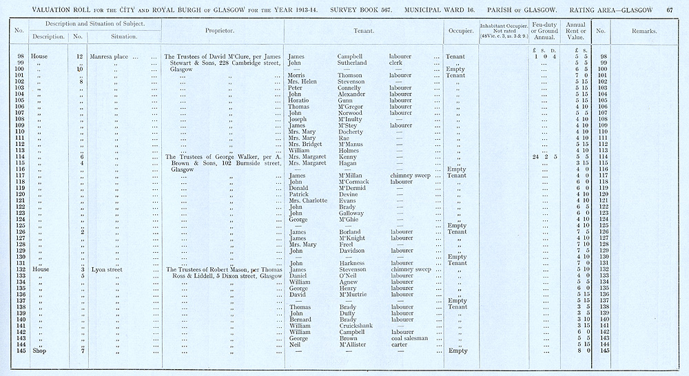 Glasgow Valuation Roll VR 1913-14, Ward 16, p067