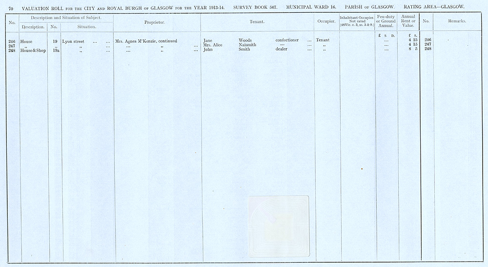 Glasgow Valuation Roll VR 1913-14, Ward 16, p070